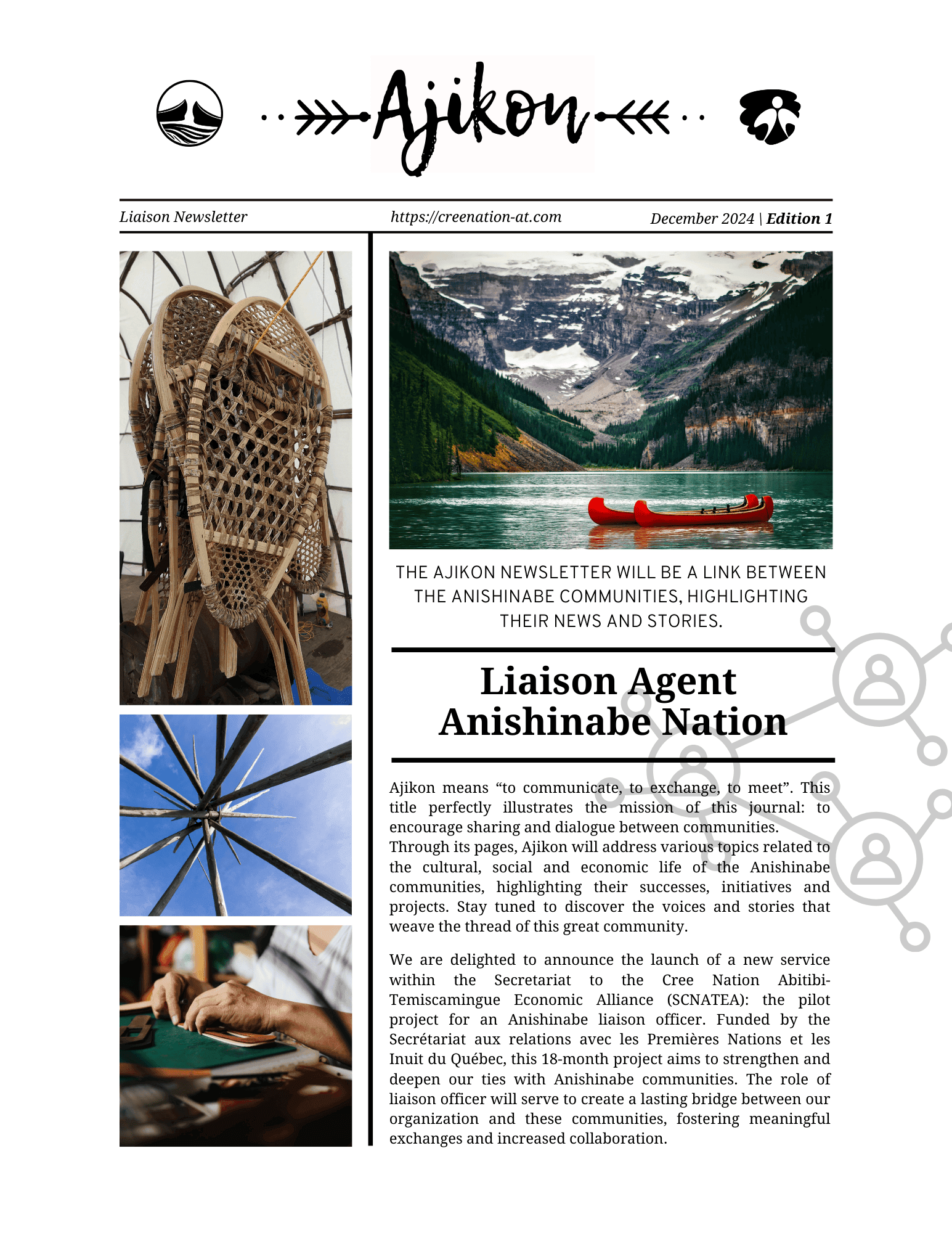 We are excited to announce the launch of a new service at the Secretariat to the Cree Nation Abitibi-Témiscamingue Economic Alliance (SCNATEA): the pilot project of an Liaison Officer for the Anishinabe Nation. Funded by the Secrétariat aux relations des Premières Nations et Inuit du Québec, this 18-month project aims to strengthen and deepen our ties with the Anishinabe communities of Abitibi-Témiscamingue.